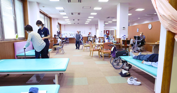 介護保険の認定(要介護・要支援)を受けられている方を対象に、施設へ通っていただき、機能訓練を行うリハビリテーションです。運動機能の改善と日常生活機能の向上を目的としたリハビリテーションを、理学療法士・作業療法士・介護福祉士・看護師の多職種が協働して提供します。